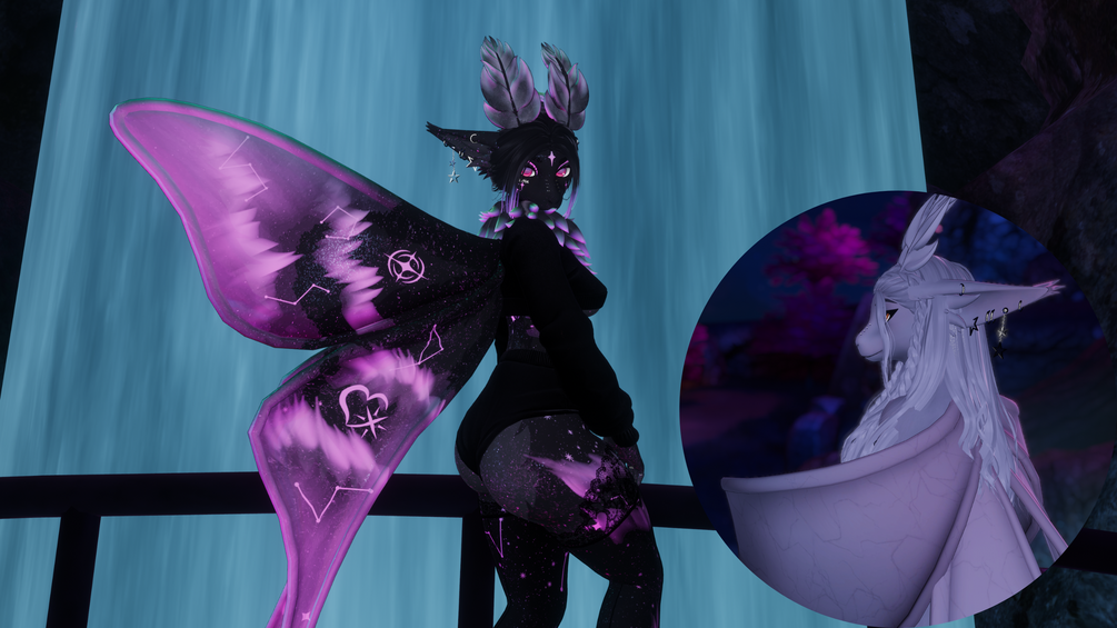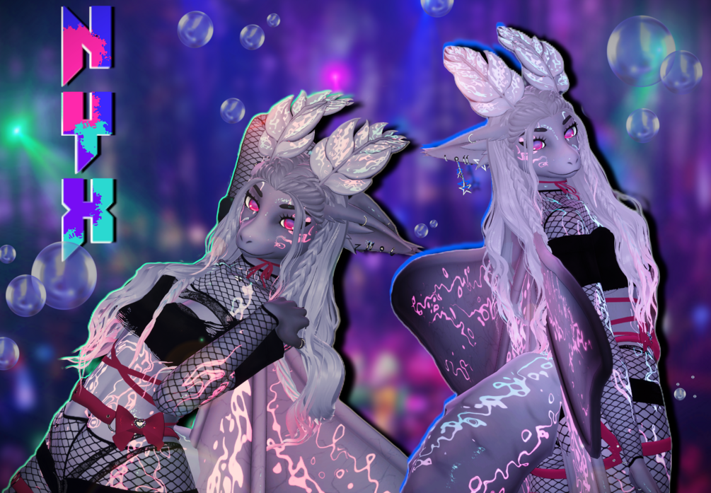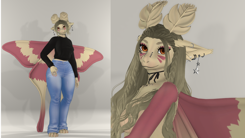 Body Parts: Shapesteacher | Hair: Nessy! , AidenFur | Body Textures: Poodle00, Dii , Fayelicious, Wetcat, CiCieaaaVR | BW Outfit: Ssukiii , Lace Heart Set: Ssukiii , Mom Jeans: Nessy! , Sweat Set: Nessy! , Lovely Dress: Sleepysdiary | Toys: Flow Toy: AuraCelestae , Follower Pet: Msage | VRCFT: FT Blendshapes: TheMinkdad , FT Template: Adjerry91